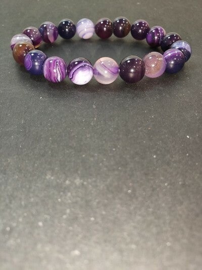 10mm ronde bal paarse agaat armband. Lengte van de armband: 18cm. Elastische montage.